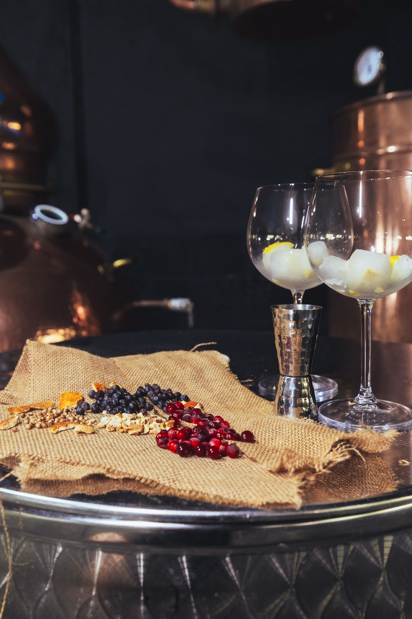 Every bottle begins with the heart of our farm: juniper, blaeberries, cranberries and other botanicals, many foraged seasonally by hand from the land surrounding the distillery.